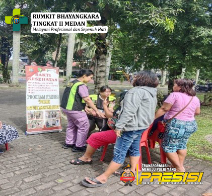 Tim medis RS Bhayangkara TK II Medan memberikan berbagai layanan, mulai dari pemeriksaan kesehatan umum, pengecekan tekanan darah dan gula darah, konsultasi medis, hingga pemberian obat gratis bagi masyarakat yang membutuhkan. Selain itu, para tenaga kesehatan juga memberikan edukasi tentang pola hidup sehat dan pencegahan penyakit menular yang masih banyak dijumpai di lingkungan masyarakat perkotaan.